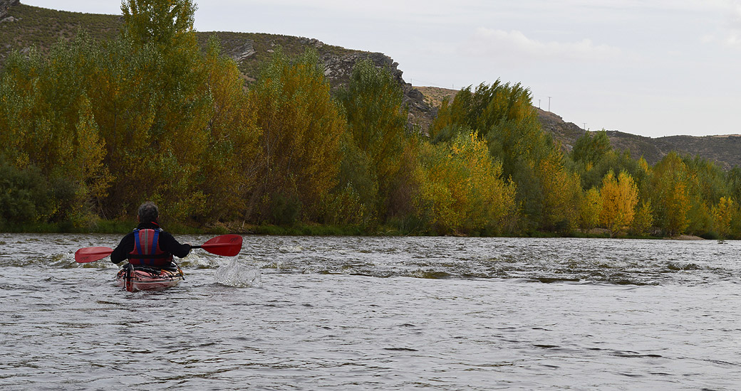 Tras portear este azud comenzamos un bonito e interesante tramo de desnivel constante y rápidos clase 2+, con el caudal de referencia, que con caudales elevados formarán divertidos trenes de olas y rápidos algo más complicados. El tramo donde el río gira hacia el sur concentrará la mayor dificultad con caudales altos. Aquí encontramos 2 azudes, muy antiguos, de los que apenas quedan vestigios y que forman rápidos en forma de rampa navegables por el lado izquierdo. El río mantiene este carácter hasta el final de nuestra etapa, donde termina la herradura y el río comienza a encañonarse, indicando de que nos acercamos a la zona de las Arribes, el gran cañón del Duero. Desembarcamos junto a la salida del túnel en esta bonita y remota zona Zamorana.