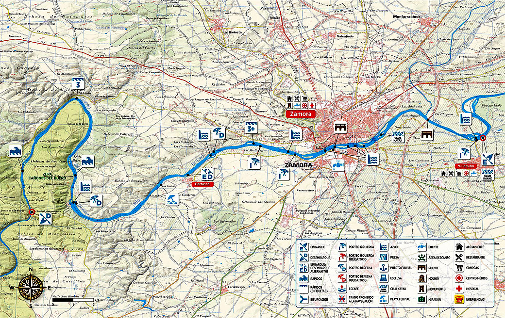 Salimos de la localidad de Villaralbo donde el club de piragüismo de la localidad tiene sus instalaciones y embarcadero. A 100 metros de la salida encontramos un azud de fácil porteo. En los cuatro kilómetros que nos separan de la ciudad de Zamora el río tiene un marcado carácter abierto y un bajo desnivel. Apenas hacemos nuestra entrada en Zamora y comenzamos a ver multitud de embarcaderos. El deporte del kayak pista, es uno de los más populares de esta localidad que cuenta con varios clubes de amplio palmaré. Enseguida encontramos el primero de los cuatro pequeños azudes que atraviesa el Duero a su paso por Zamora y vemos ya a lo lejos el monumental puente de piedra que da acceso a la parte más antigua de la ciudad.